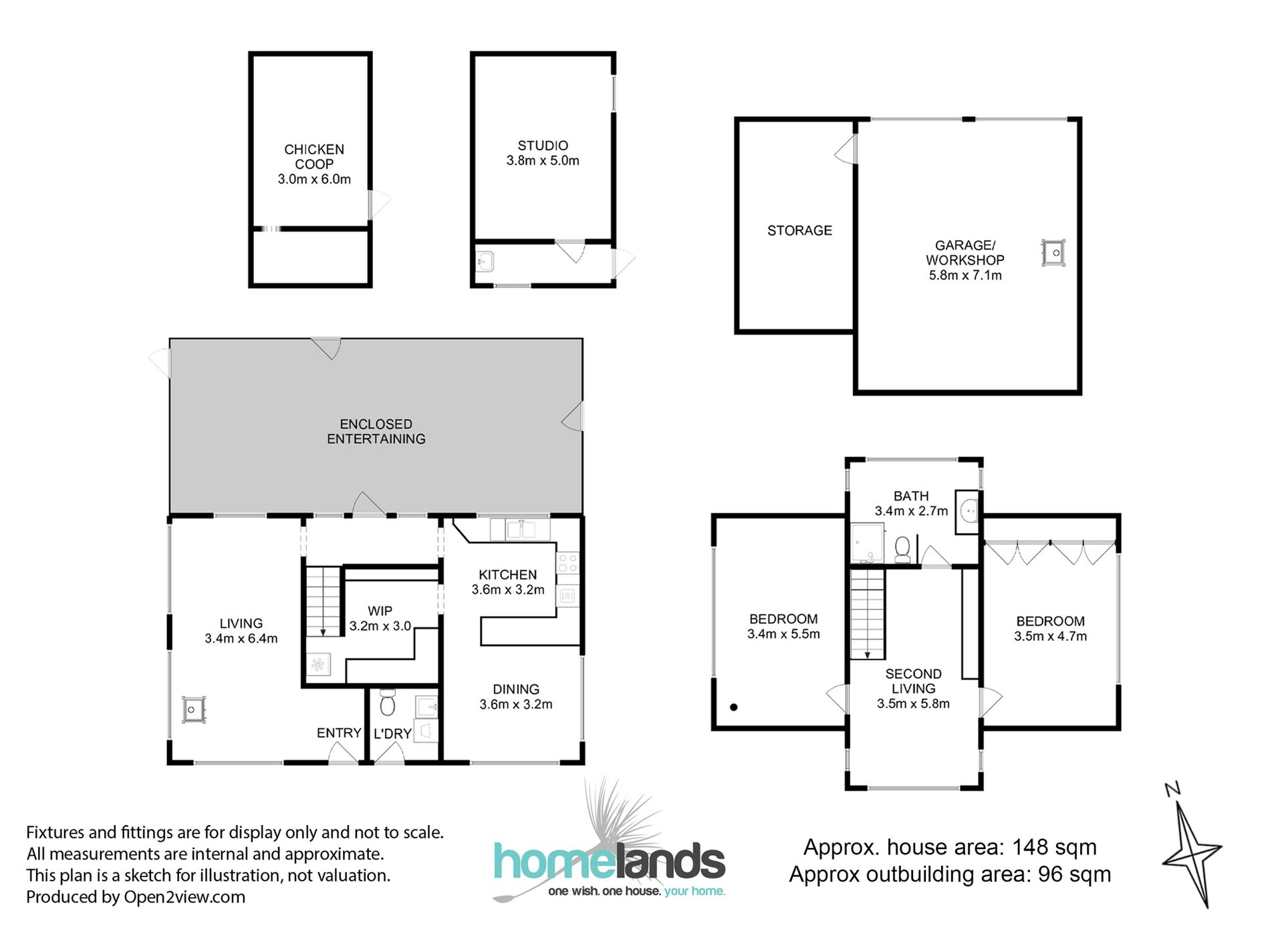 A double garage with a wood fire and workshop is offered in addition to a spacious chicken coop and animal shelter.