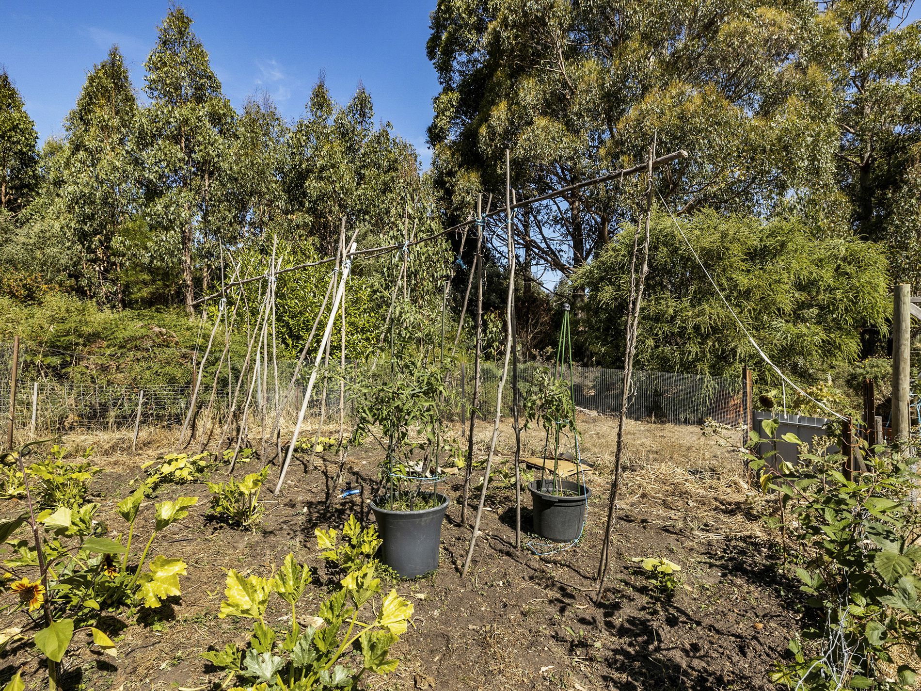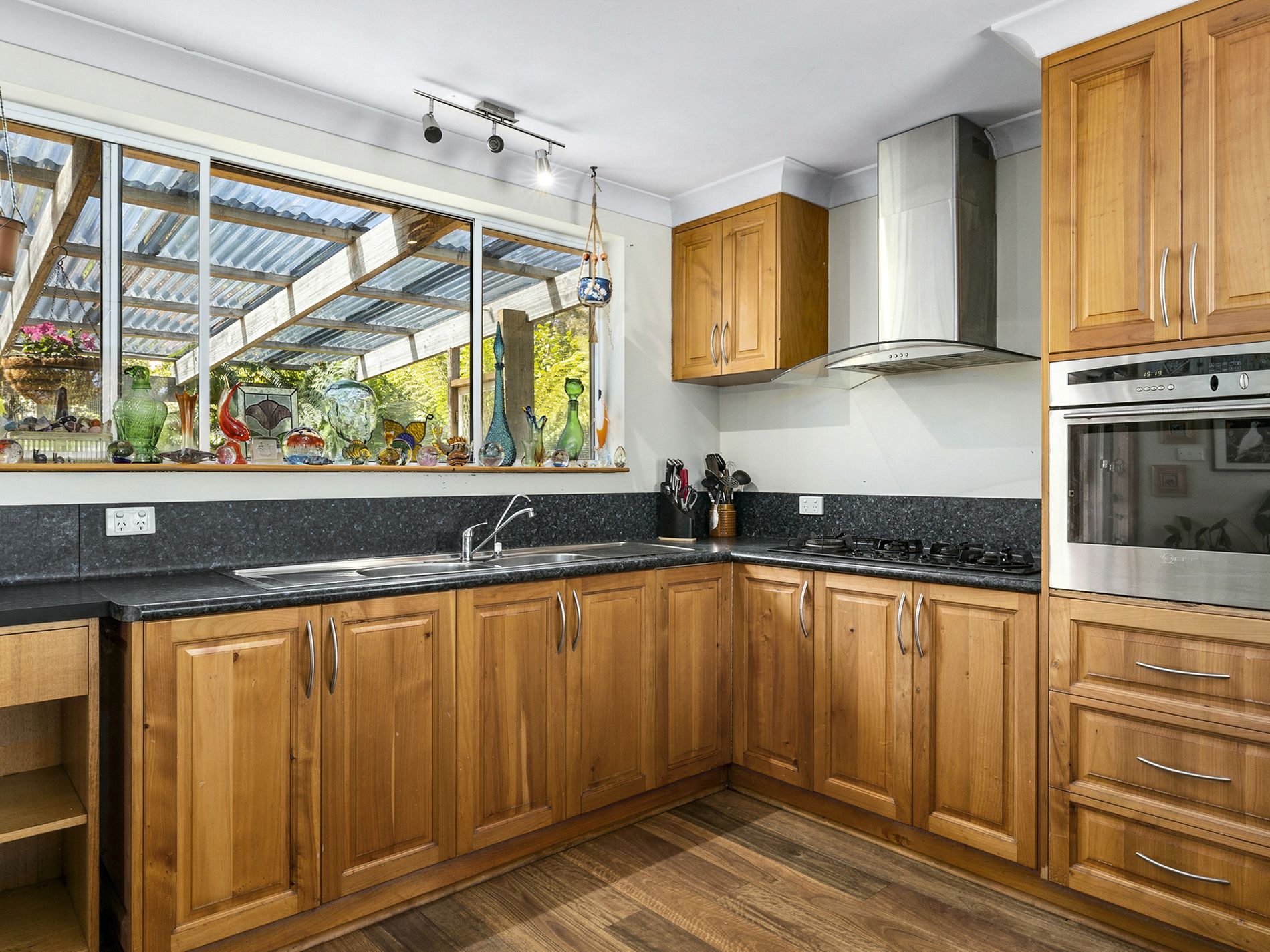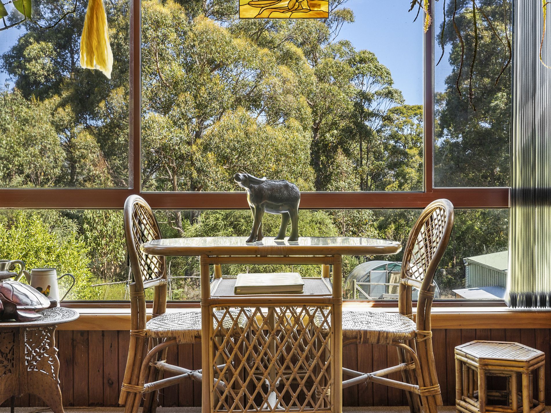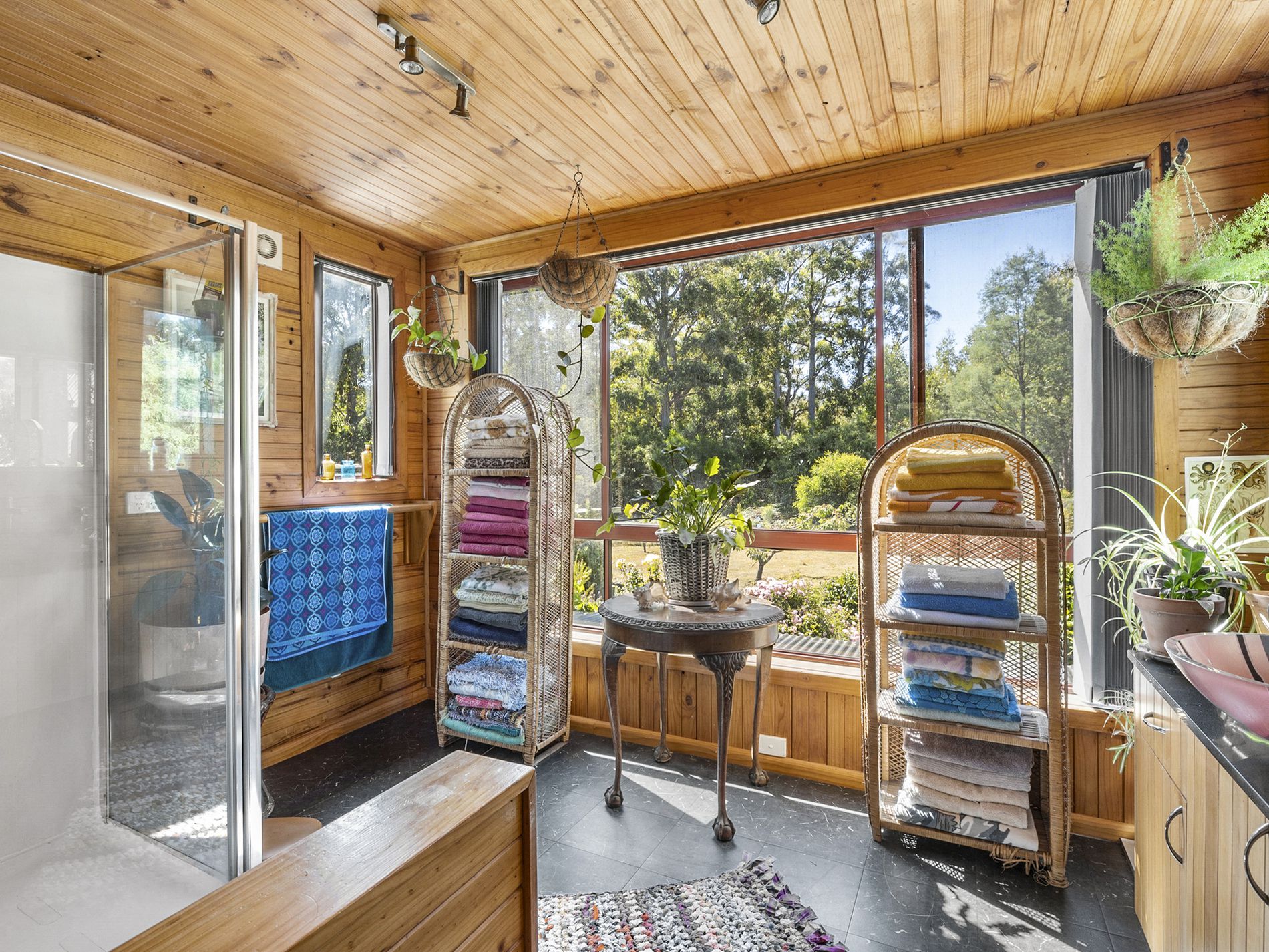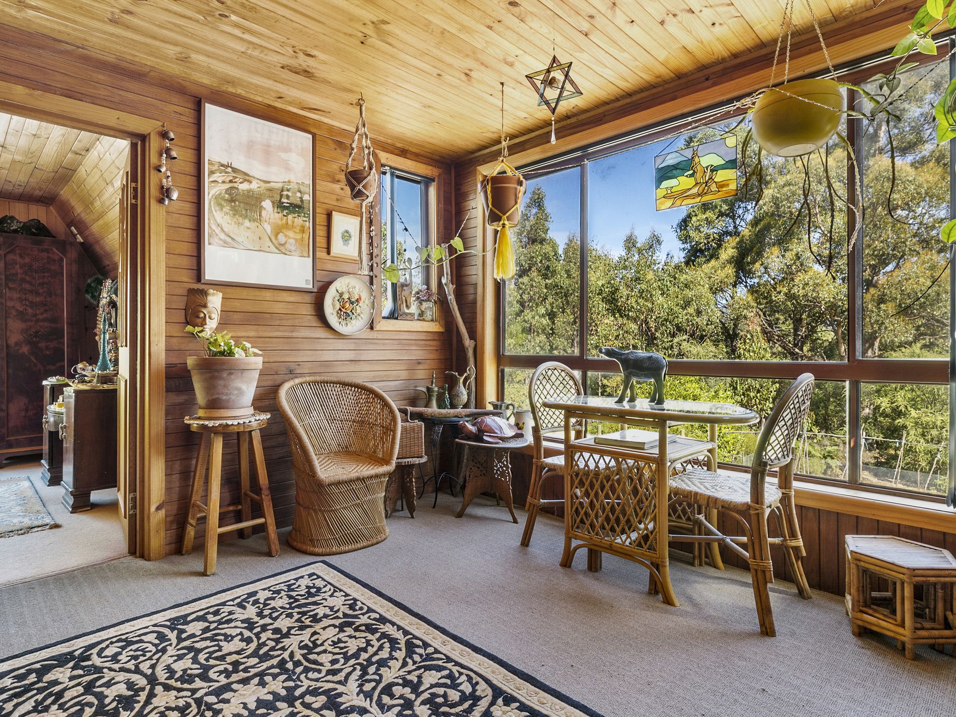The timber kitchen and adjoining dining room are also on the entrance level and fill with morning light thanks to the easterly aspect. The massive walk-in pantry is a highlight of this space and will comfortably house the preserved fruits made from the many orchard trees as well as the fresh produce from your gardens.