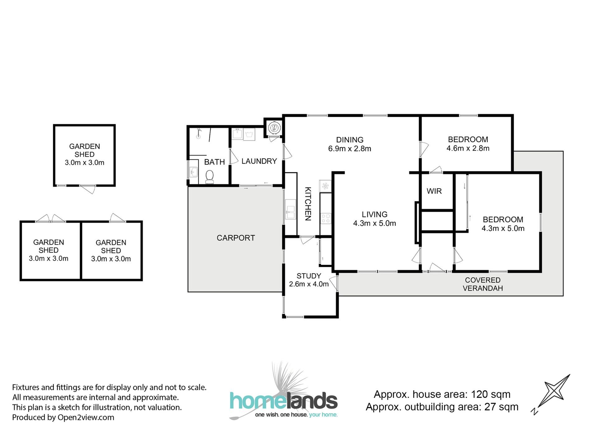 There are several outbuildings for wood storage and garden tools as well a carport.