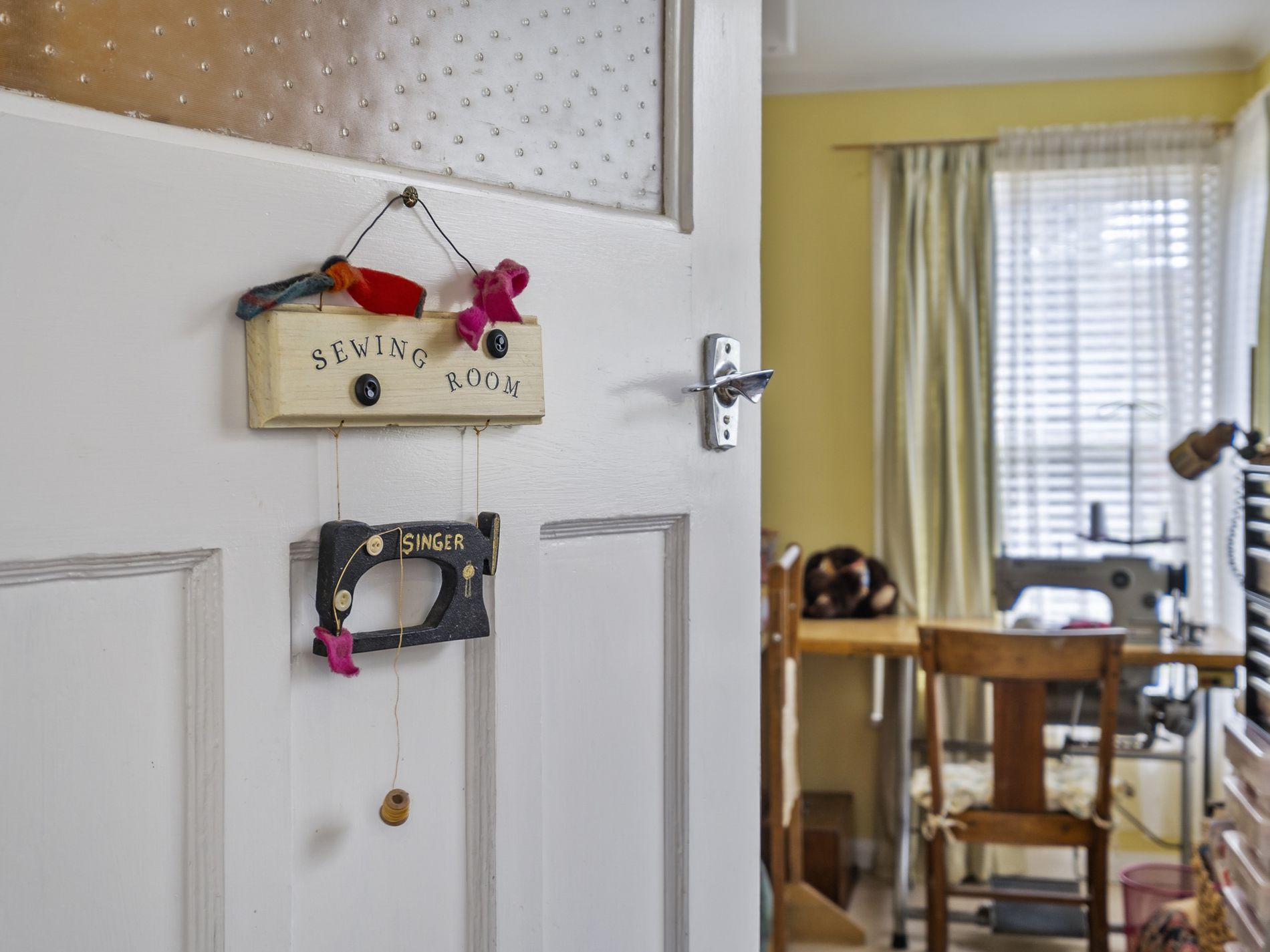 The timber, galley style kitchen enjoys views over the back garden and leads into a gorgeous little room that would make an ideal office or walk in pantry. This room offers built in storage and access to the front porch.